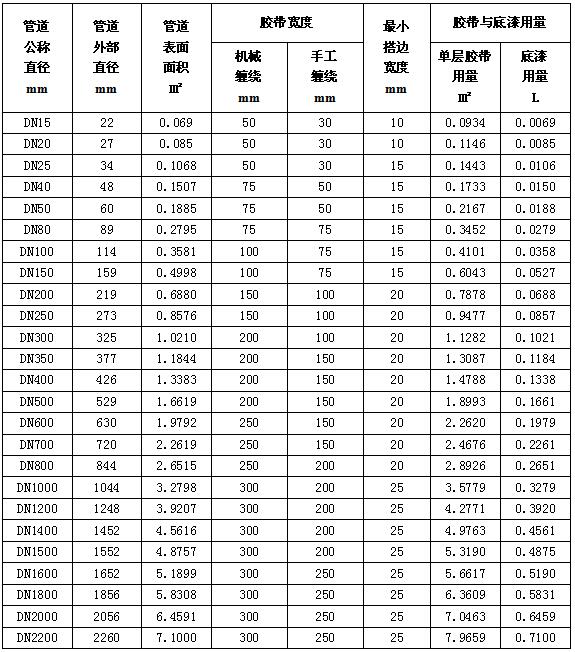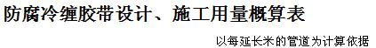 防腐冷纏膠帶設(shè)計(jì)、施工用量概算表